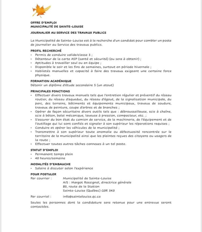 Emploi à la voirie