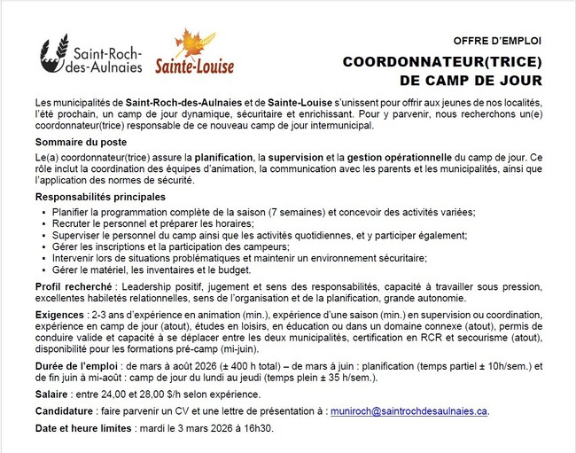 Quand de jour intermunicipal St-Roch-des-Aulnaies/Sainte-Louise